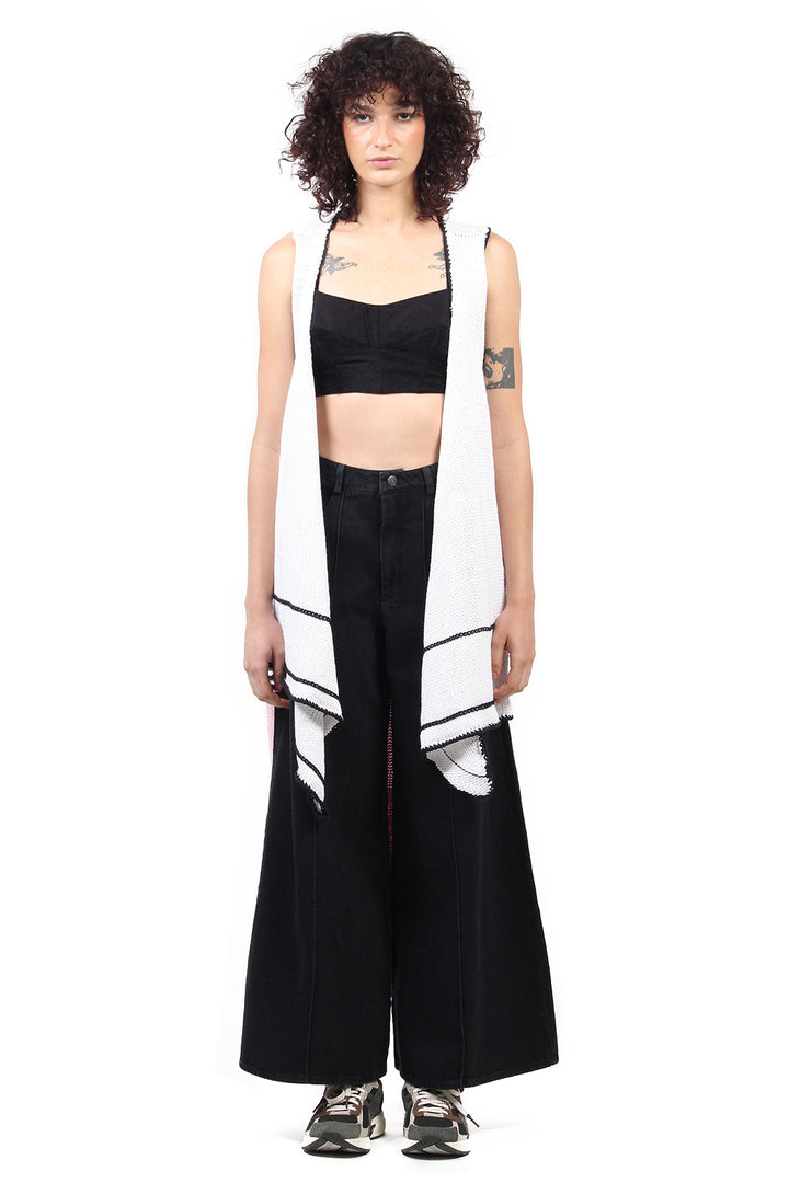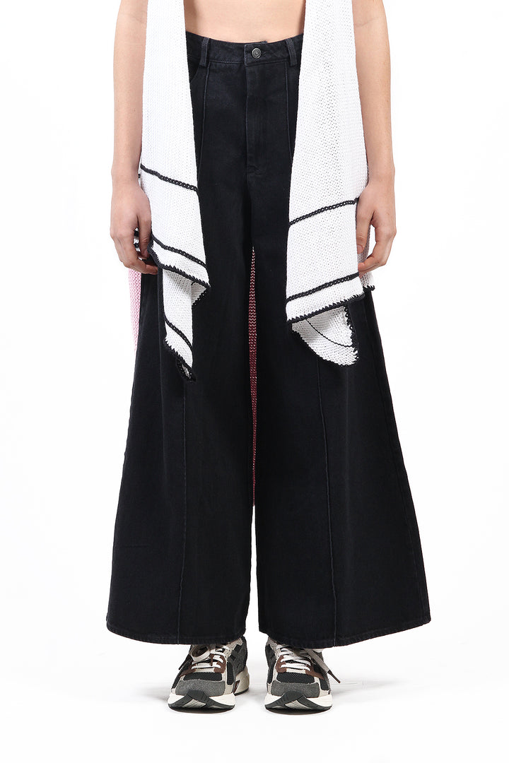 A Calça Rachel Black Jeans é feita de tecido jeans com a lavagem bem escura. A peça tem silhueta pantalona, cintura alta e cós com fechamento por zíper. Aquela peça curinga do armário!