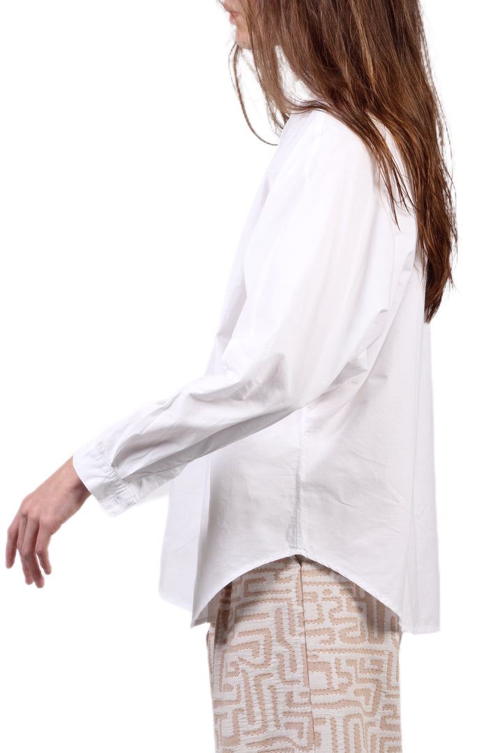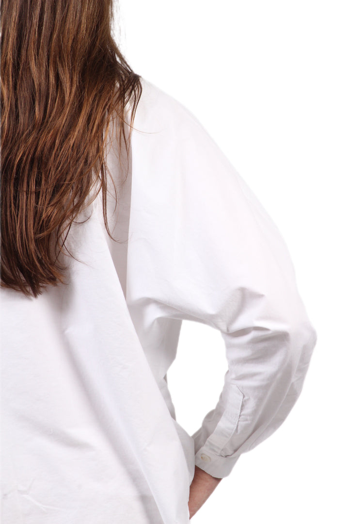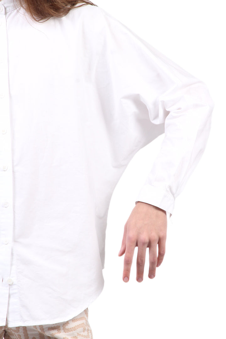 A Camisa Fe Manga Morcego na cor Branco é feita de tricoline e tem a gola careca. De modelagem ampla, atende a todos os tipos de corpos e tem abotoamento frontal simples. Um clássico e curinga para todas as horas.
