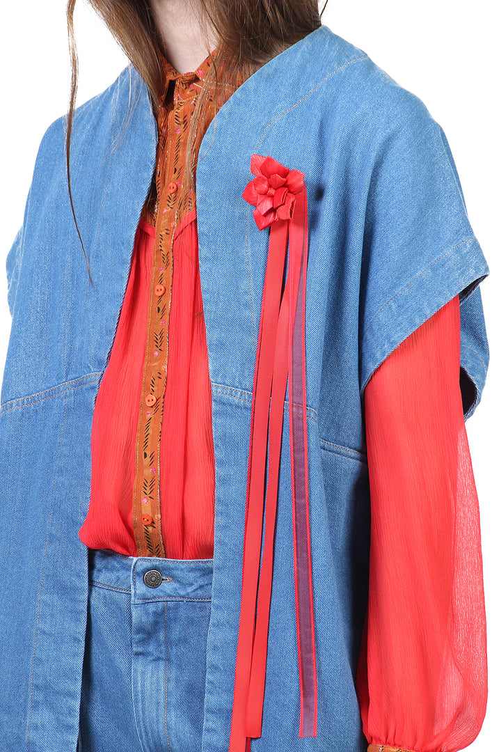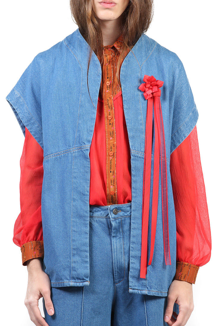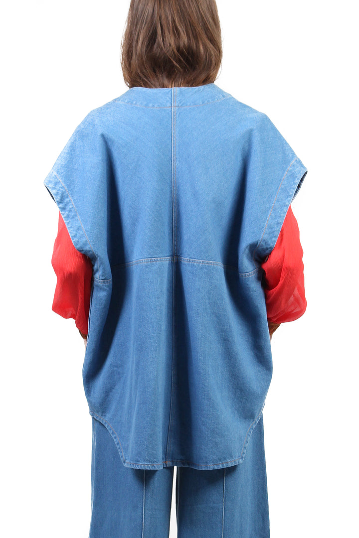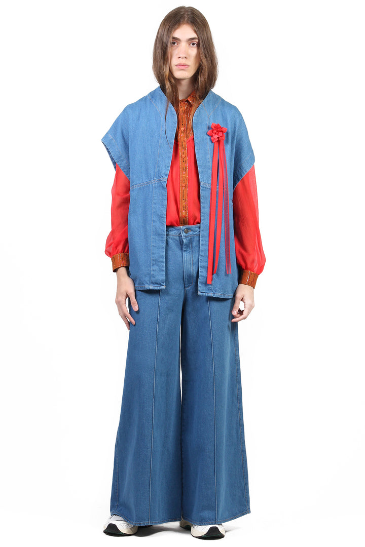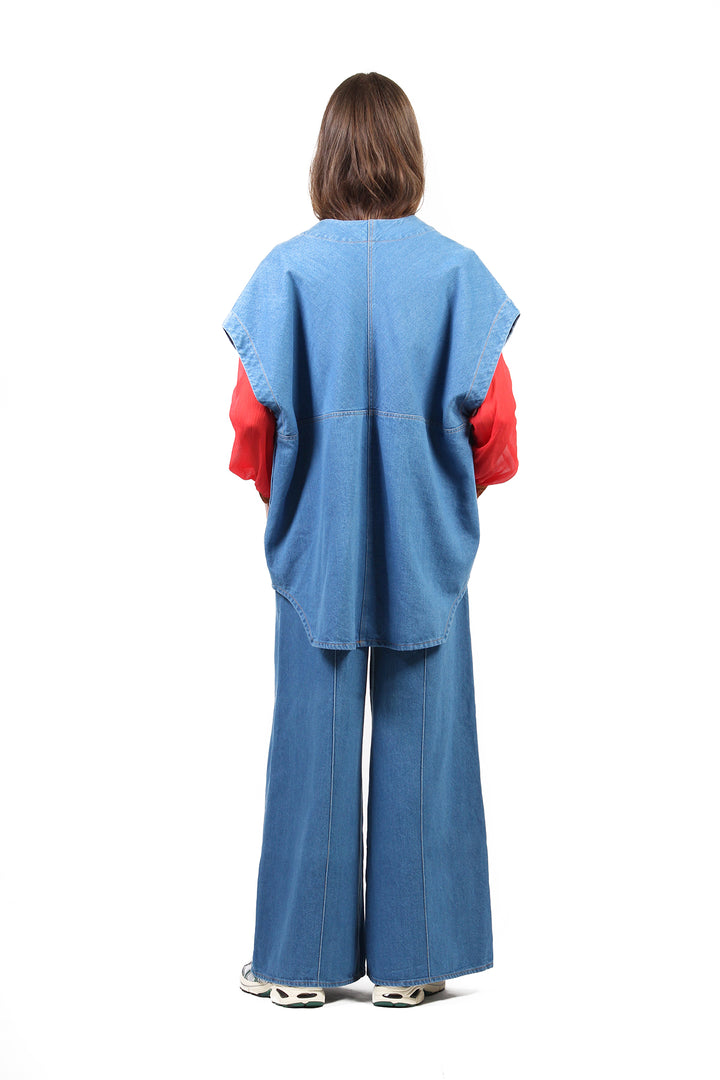 O Colete Jeans Baby Blue é feita de tecido jeans com a lavagem bem clarinha. A peça tem modelagem ampla, silhueta soltinha e sem fechamento. O jeans coincide com a mesma lavagem da Calça Pantalona Rachel Baby Blue, portanto você pode optar por formar um conjunto. Perfeito para se tornar a terceira peça do look!