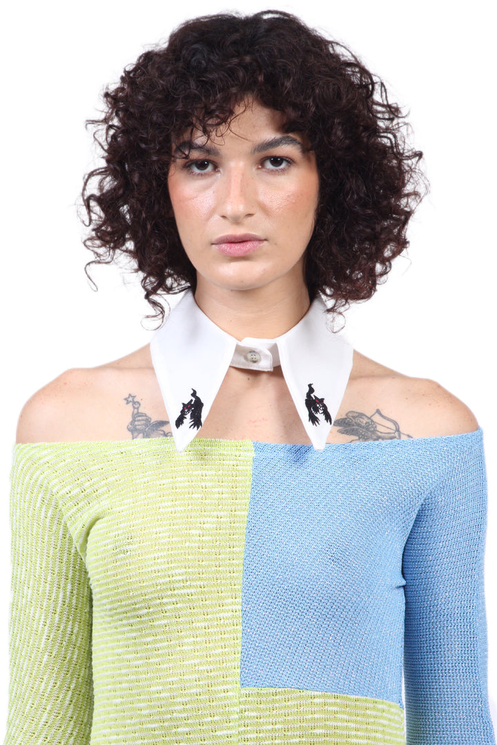A Golinha Lobisomen é uma gola avulsa 100% CO e bordada a mão com desenho de Lobisomem.