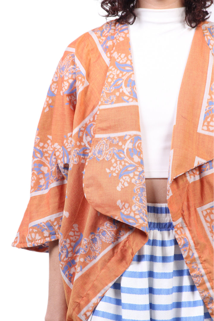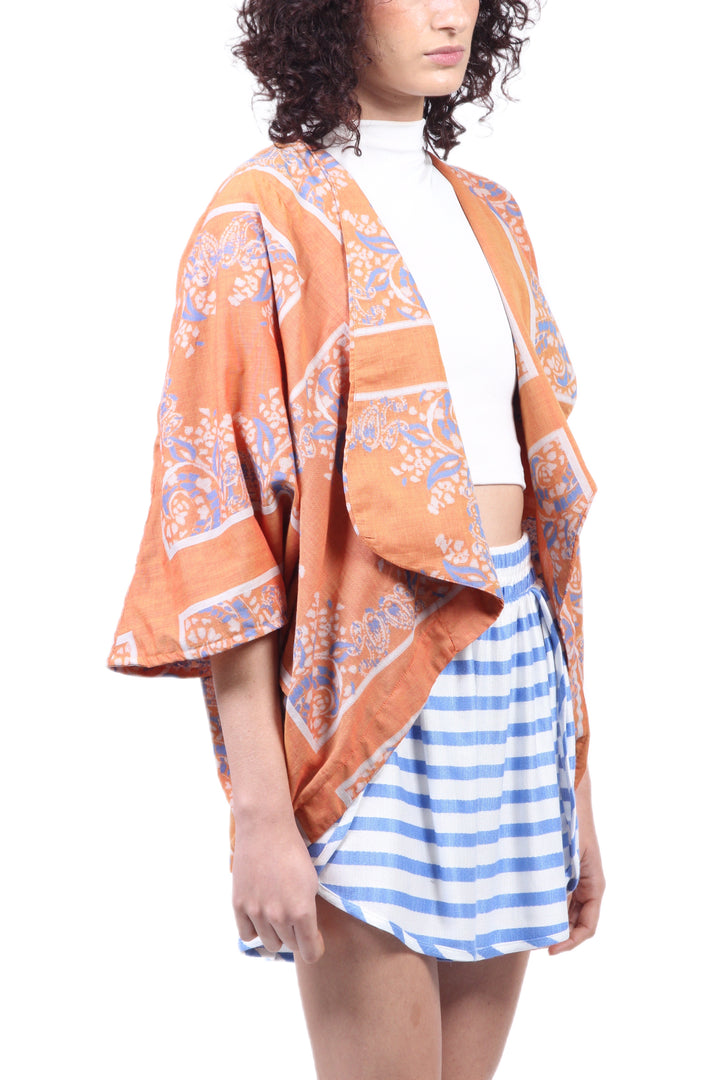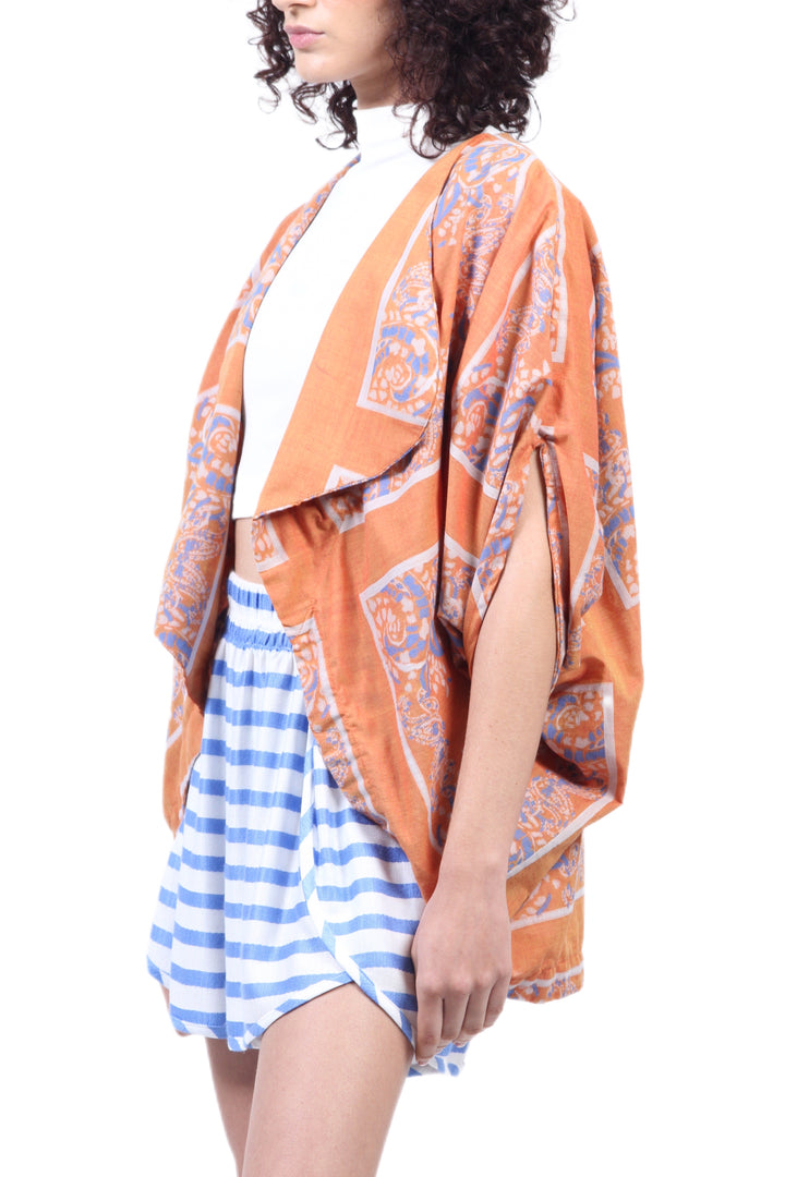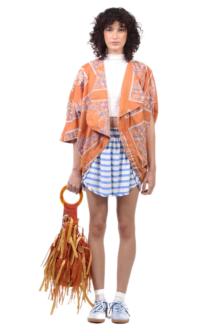 O Kimono Leo é um modelo Assimétrico em jacquard de algodão e tecido de final de estoque da tecelagem Renauxview. Portanto uma peça de UPCYCLING ao considerar o uso de um tecido que já existe pronto, e com poucas chances de ser aproveitado.