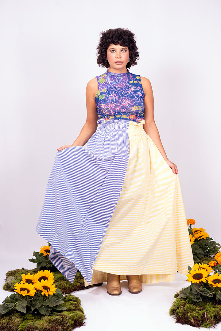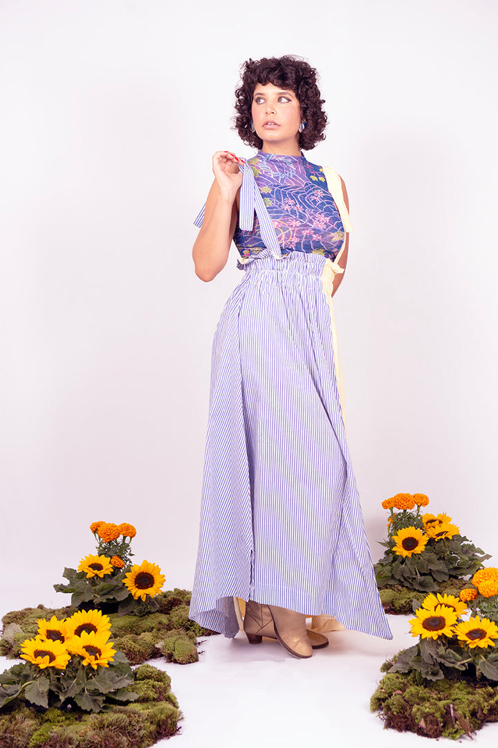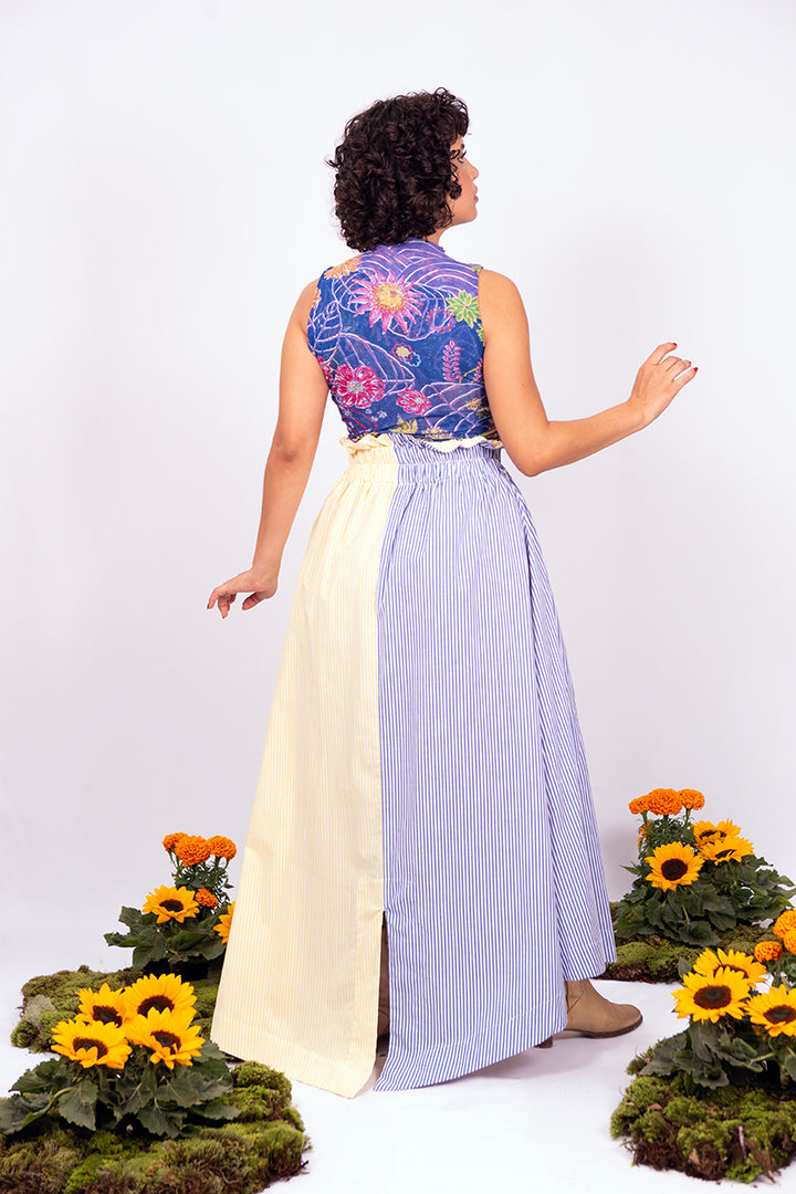 O TOP CACHARREL é feito em tule estampado exclusivo "bomba de flores" assinado pelo artista Matheus Baz. Sem fecho, com gola reta, sem mangas. A peça tem costas fechadas, barra regular e caimento justo.